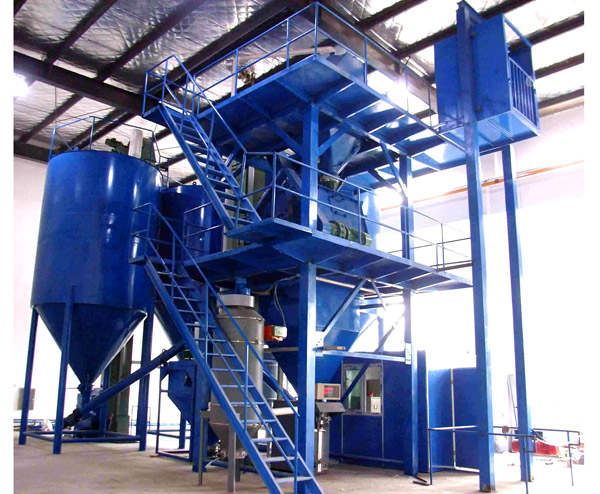 本設備是我公司應國內外大型膩子粉生產企業的需求,自主研發制造,居國內領先地位。自動化程度高,微機控制,從原料配比到成品計量包裝,全部電腦操作完成。是一款設計合理、工藝先進的大型膩子粉生產設備,適用于產量較大的工藝要求。